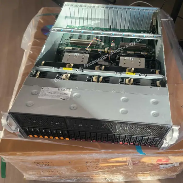 The server uses the Super X11DPG-OT-CPU motherboard, which is designed to support high-performance components.