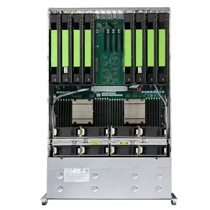 The server is designed to effectively manage heat generated by multiple GPUs and processors, typically supporting advanced cooling solutions, though specific models may vary.