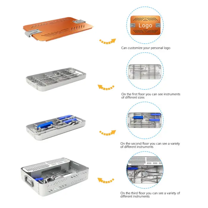 The set includes a variety of high-quality surgical tools tailored for different surgical needs in orthopedic procedures.