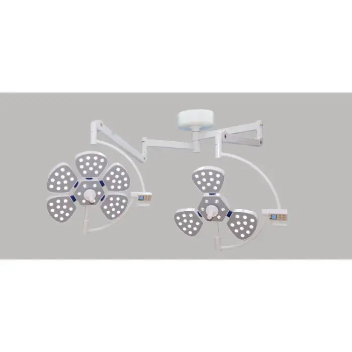 This surgical lamp features a high-quality LED light source, long bulb life, adjustable positioning, and a wide color temperature range, making it versatile and reliable for various surgical needs.