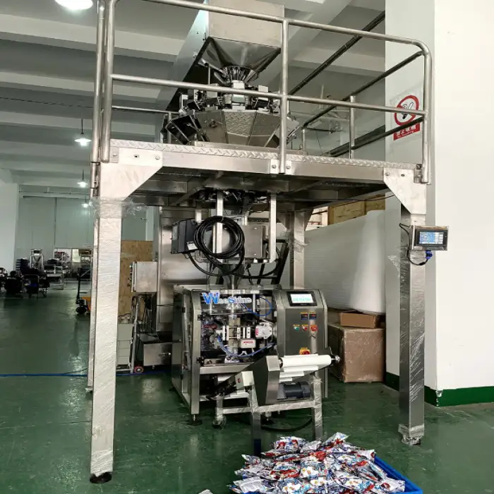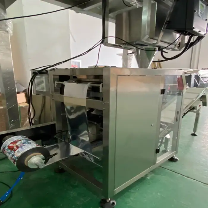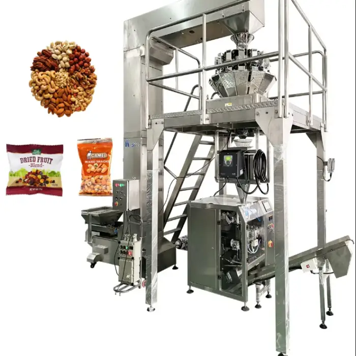 This machine is versatile and can package a variety of snacks, including cashew nuts, puffed food, seeds, grains, beans, biscuits, and candy.