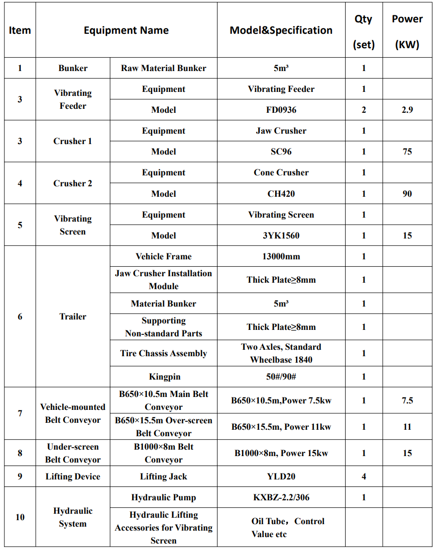 The SWZ100-4 includes a primary SC96 model jaw crusher and a secondary CH420 cone crusher.