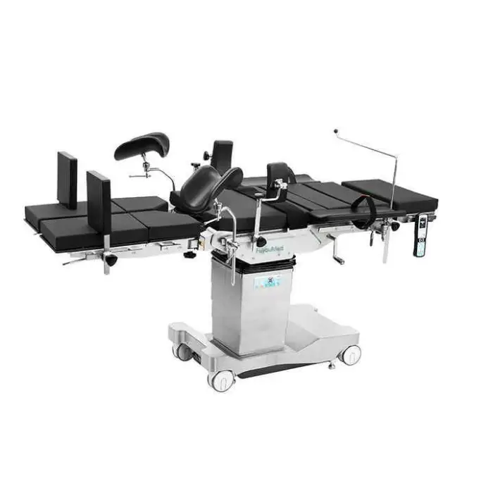 The table is used in operating rooms for surgical procedures, medical examinations, emergency situations, and various specialties like orthopedics and gynecology.