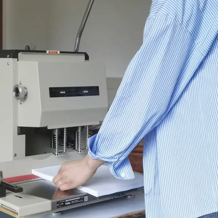 The T50A is designed to punch through various paper types, including standard paper, cardstock, and other similar materials.