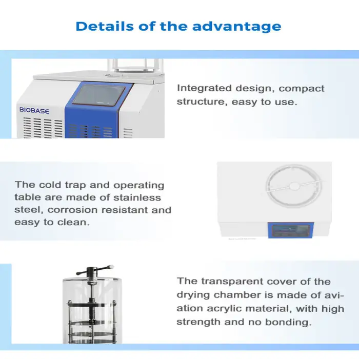 The Table Freeze Dryer has a cold trap temperature of -60℃, allowing for efficient preservation of biomedical samples.