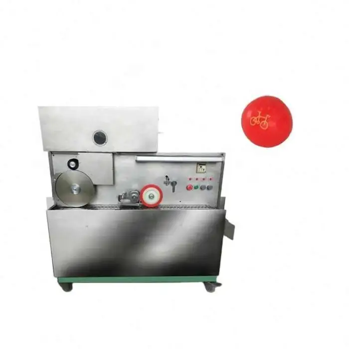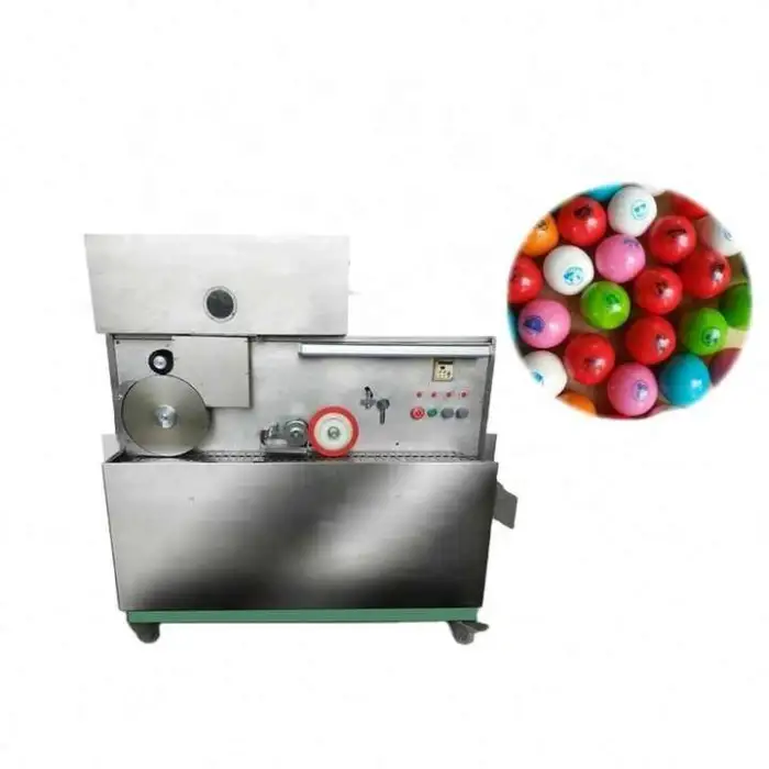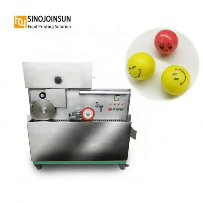 The machine is designed to print on ball candies and chocolates, allowing for a variety of confectionery products.