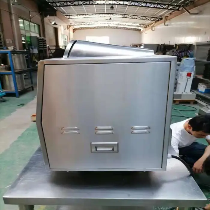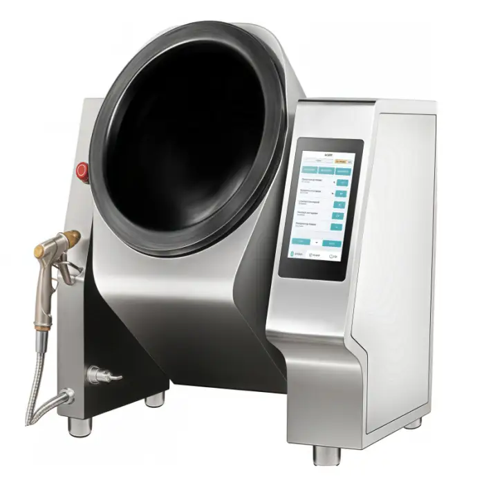 The Tabletop Automatic Wok Machine is made of durable stainless steel, ensuring longevity and ease of maintenance.