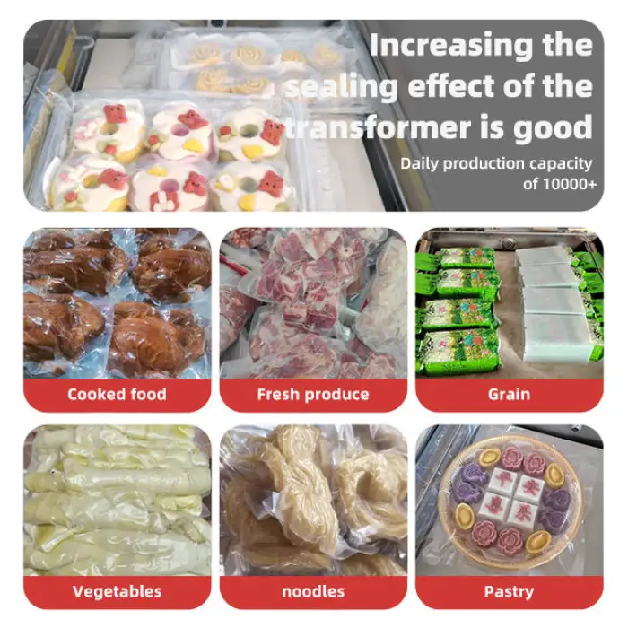 This vacuum sealer is fully automatic, compact for tabletop use, and designed for high productivity. It also offers multifunctional features suitable for various food types.