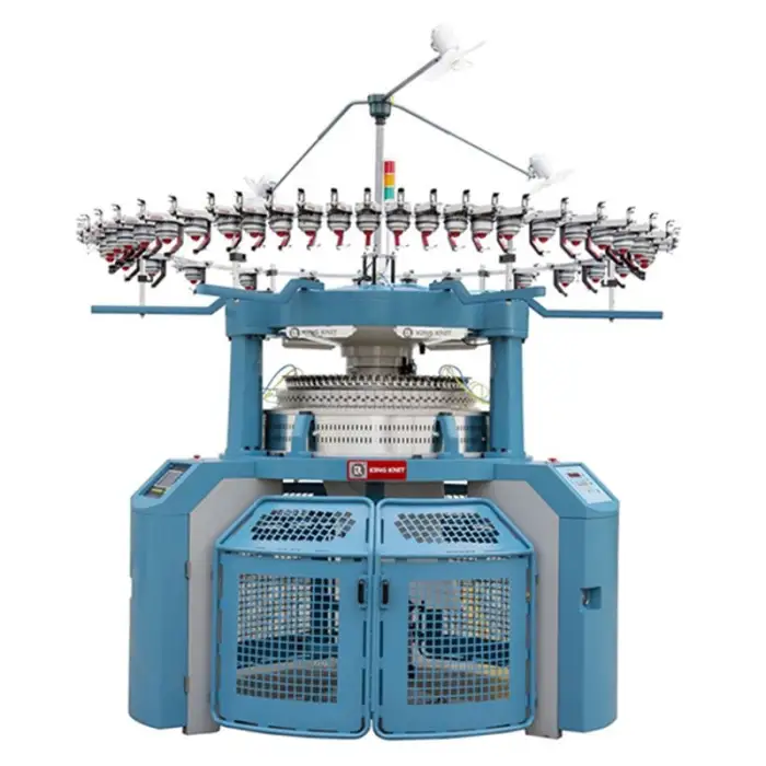 This machine can produce double jersey fabrics, as well as various specialized fabrics such as terry and fleece.