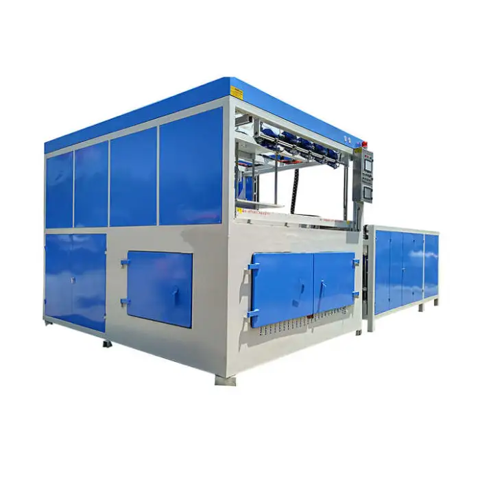 The Thermoforming Machine can work with a variety of plastics including PMMA, Hips, PU, PVC, PS, PA, BOPS, PP, Bopp, EPS, and PET.