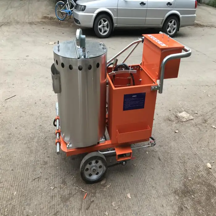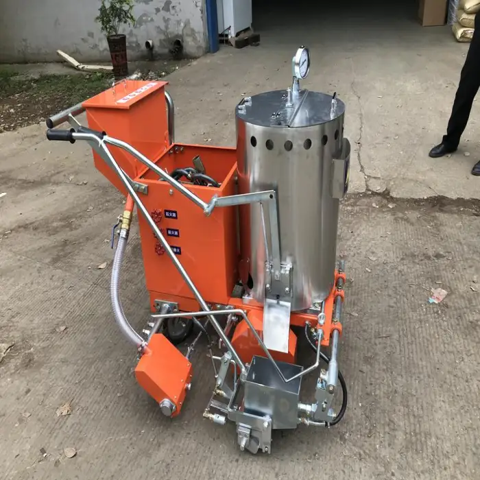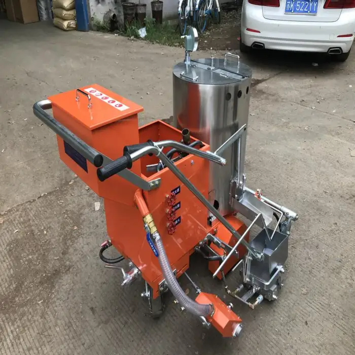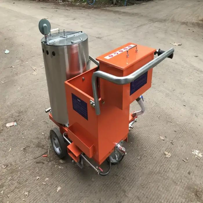 The machine uses the thermoplastic screeding marking method.