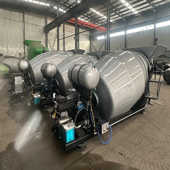 The Three Wheeled Concrete Mixer Truck has a mixing capacity of 2.5 cubic meters.