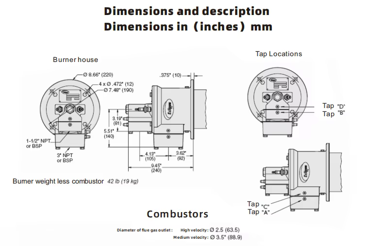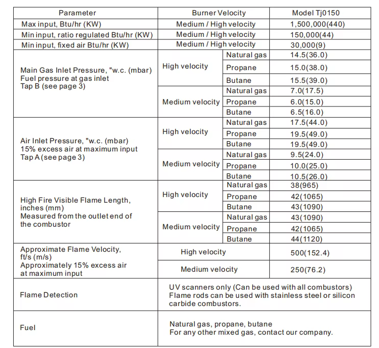 The maximum input capacity of the TJ0150 & TJ0200 burner system is 1,500,000 Btu/hr (440 kW).