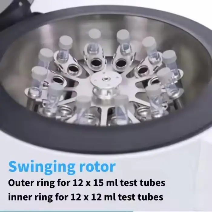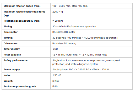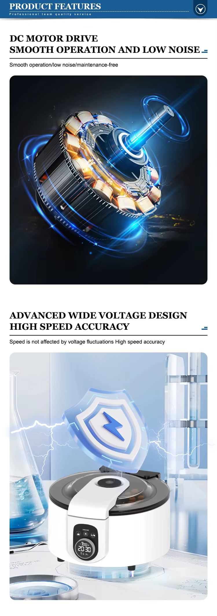 This centrifuge is ideal for separating samples in biological and chemical laboratories, as well as clinical applications such as blood sample processing.