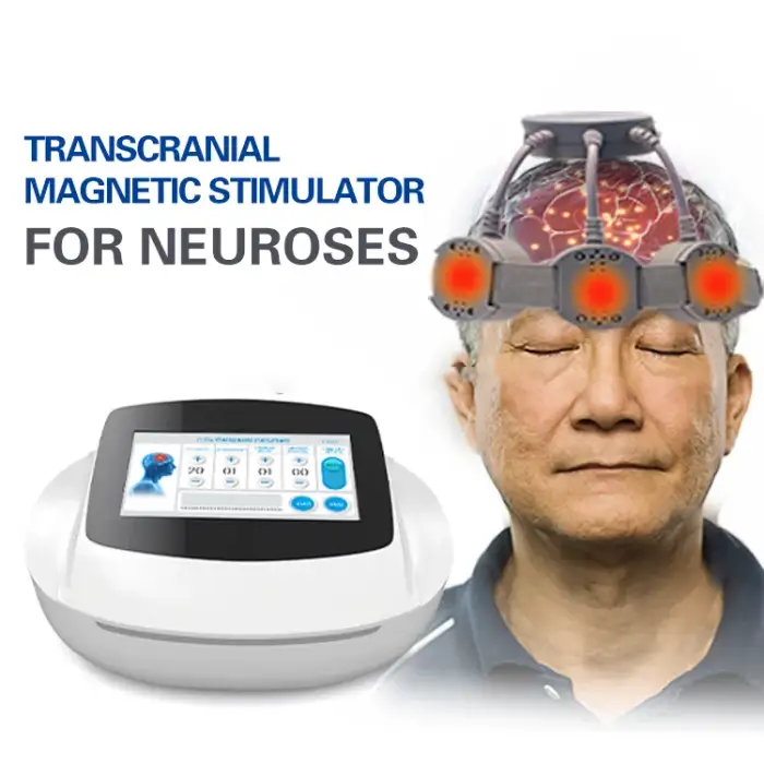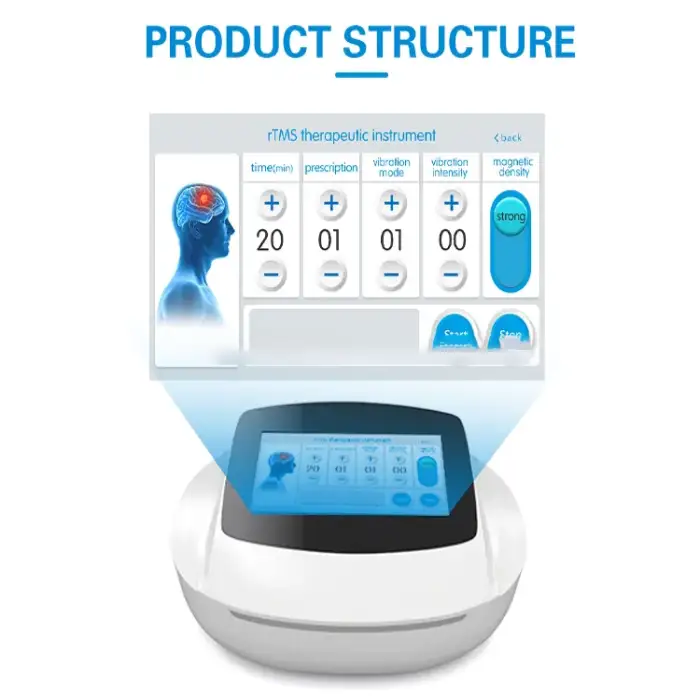 The TMS Therapy Machine is a non-invasive device that uses transcranial magnetic stimulation (TMS) technology to stimulate brain function, aimed at treating various neurological diseases.
