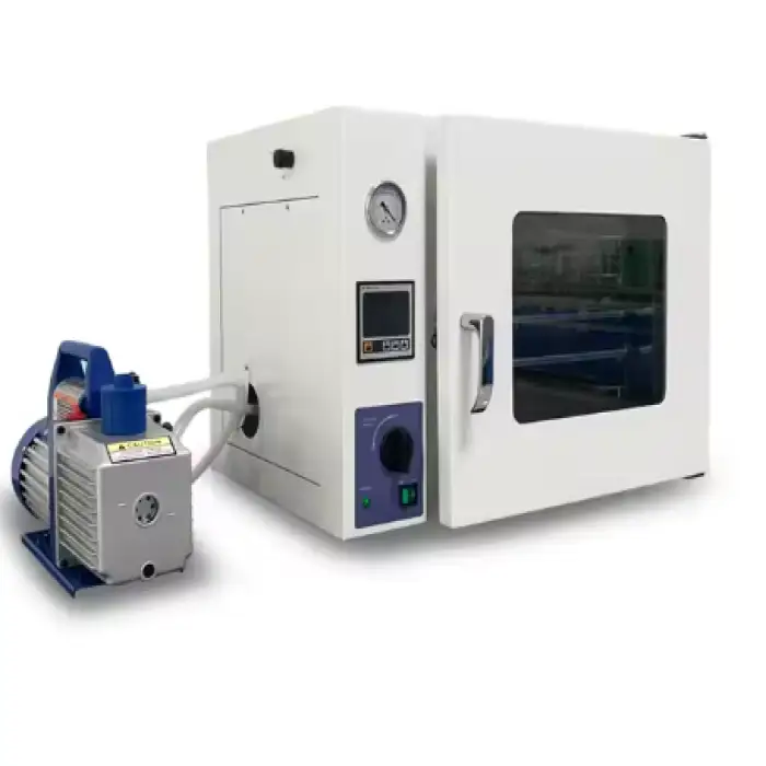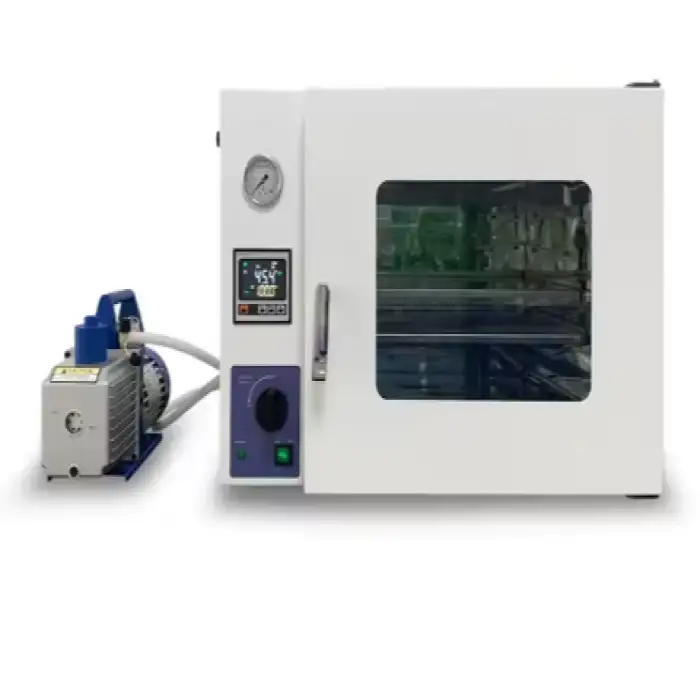The optional vacuum pump enhances the oven's capabilities, allowing for improved vacuum control during various applications such as drying and curing processes.