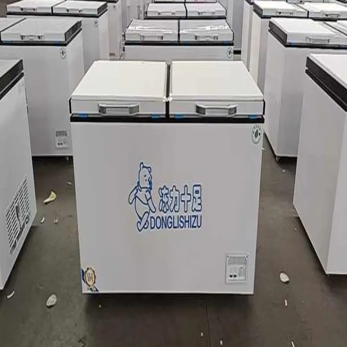 Type: Chest freezer; Cooling mode: Direct cooling; Doors: 2 (top-open); Temperature control: Electronic controller; Refrigerant: R290; Voltage: 220V; Compressor: Dongbei; Energy rating: 1 star; Size: Customized; Color: White; Defrosting: Automatic and manual.