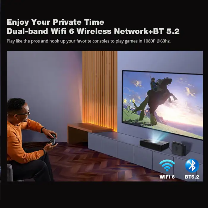 The projector supports a physical resolution of 1080P and can project up to a maximum of 8K resolution.