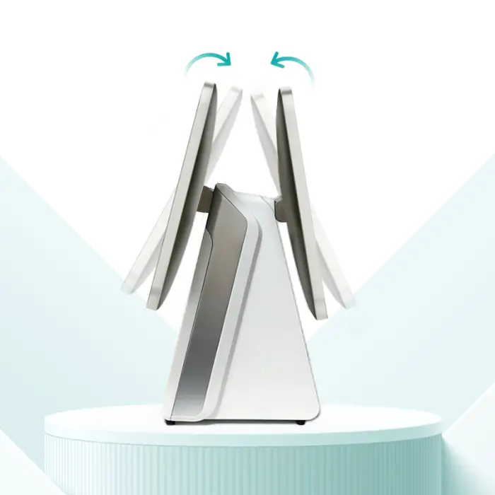 14. How does the double screen enhance customer interaction?