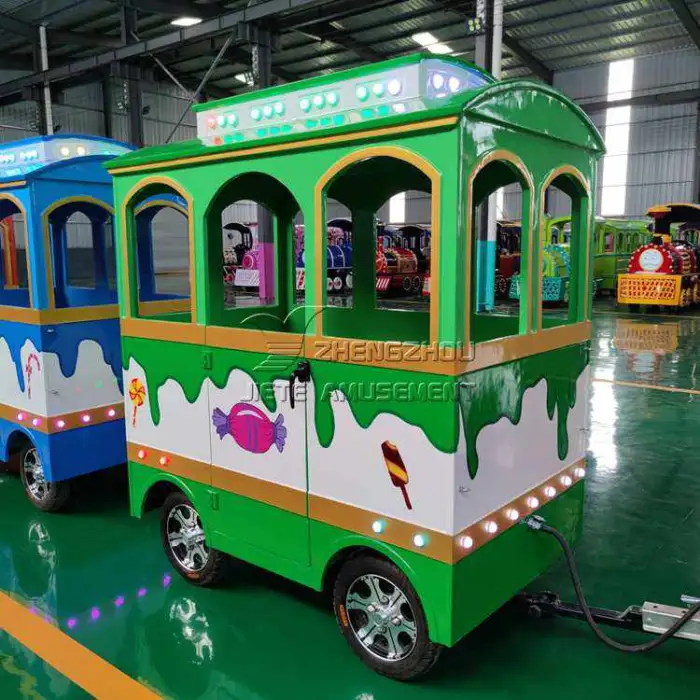 The trackless train is equipped with a 4kw engine for high power efficiency.