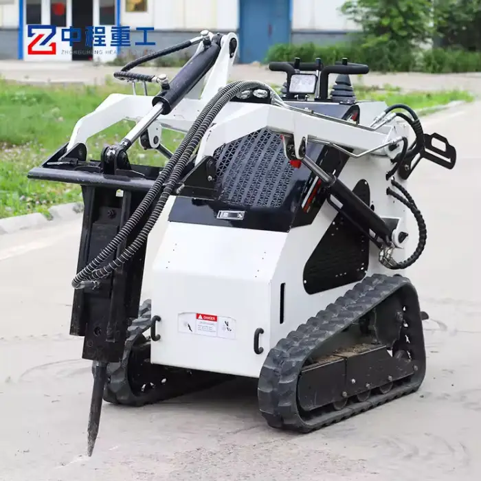 The Track Wheel Mini Skid Steer Loader is suitable for construction site material handling, landscaping, excavation, snow removal, and road maintenance.
