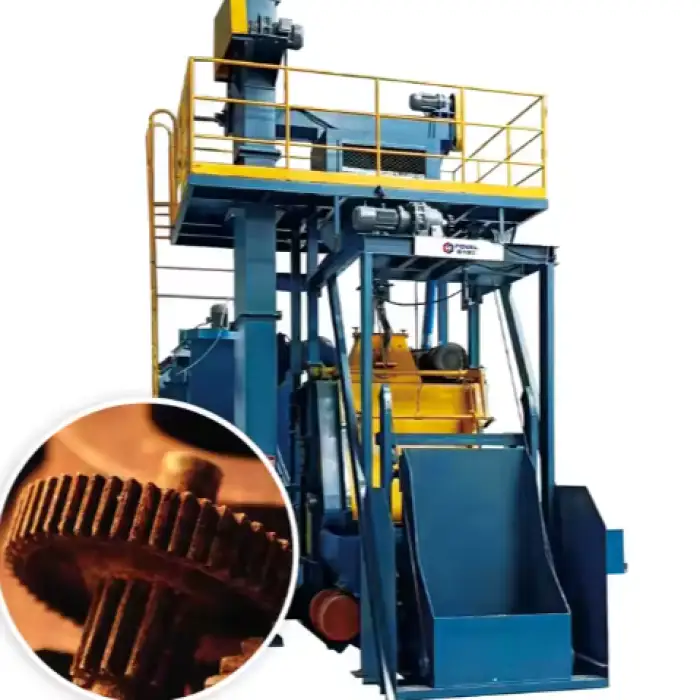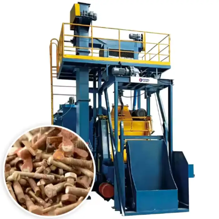 This machine is used in various manufacturing industries, particularly in sectors that require rust removal and surface preparation.
