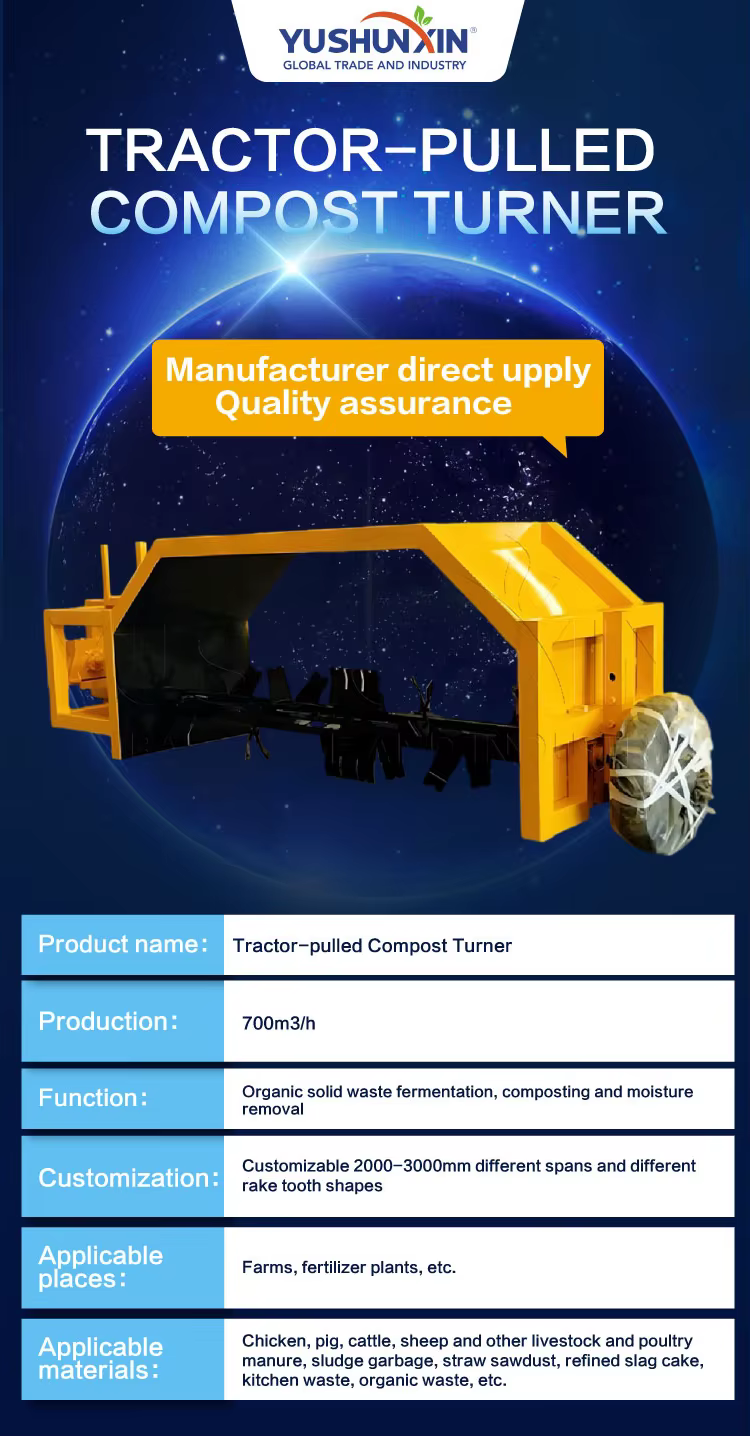 It is designed to turn and mix various types of organic waste, including agricultural residues, food waste, and manure.