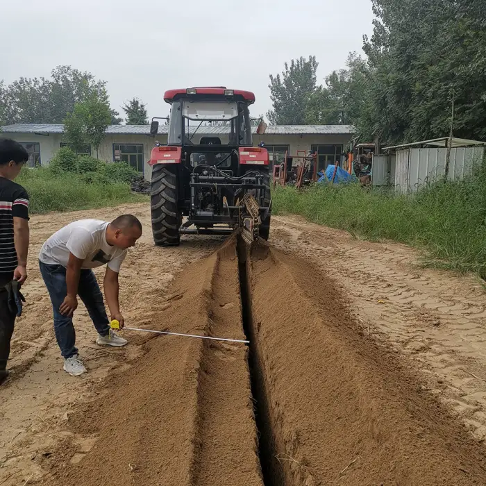 The primary use of this trencher is for efficiently digging trenches for water pipes and cables in farmland and various landscaping projects.