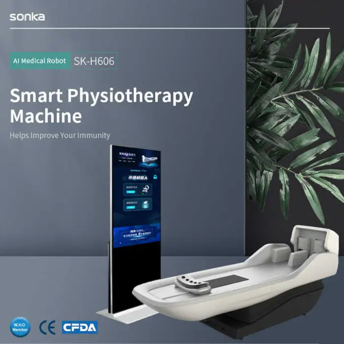 It is a robotic rehabilitation device (model SK-H606 by SONKAM) that combines far infrared thermotherapy and muscle massage functions to support rehabilitation, reduce pain and promote muscle relaxation in clinical and home settings.