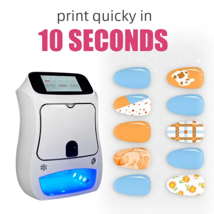 The printer has a high resolution of 1280x720, allowing for detailed and vibrant nail art designs.