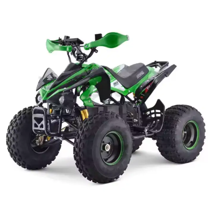 The ATV features a front disc and rear disc hydraulic brake system for enhanced safety.