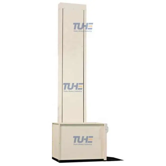 The TUHE Small Home Wheelchair Elevator Lift has a load capacity ranging from 150 to 350 Kg.