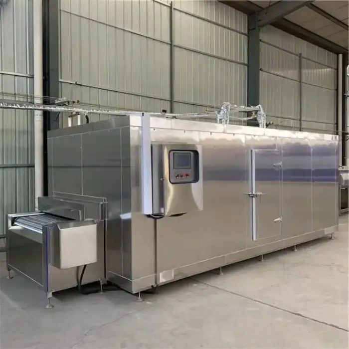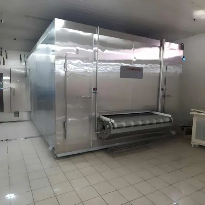 Regular maintenance typically includes compressor checks, refrigerant leak inspection, cleaning and sanitation of conveyor and evaporator coils, defrost management, belt tensioning and periodic electrical inspections. A maintenance schedule should be provided by the supplier.