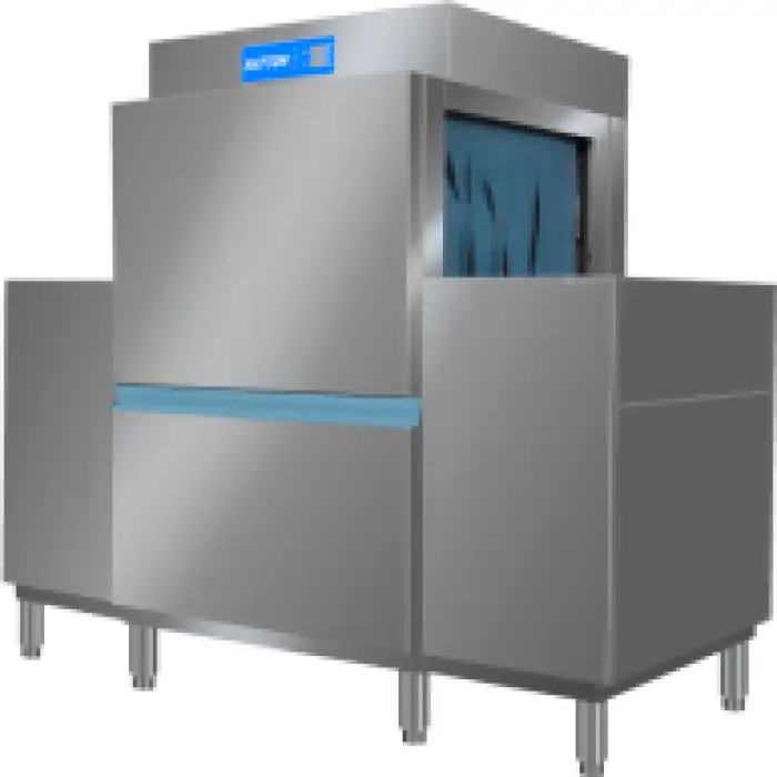 The Tunnel Type Conveyor Dishwasher is constructed from stainless steel 304, ensuring durability and resistance to corrosion.