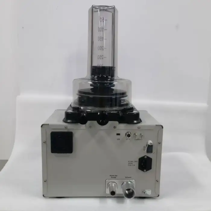The machine includes a safety locking device to prevent anesthetic leakage, as well as a unique pop-off valve design that connects to exhaust gas recovery systems.