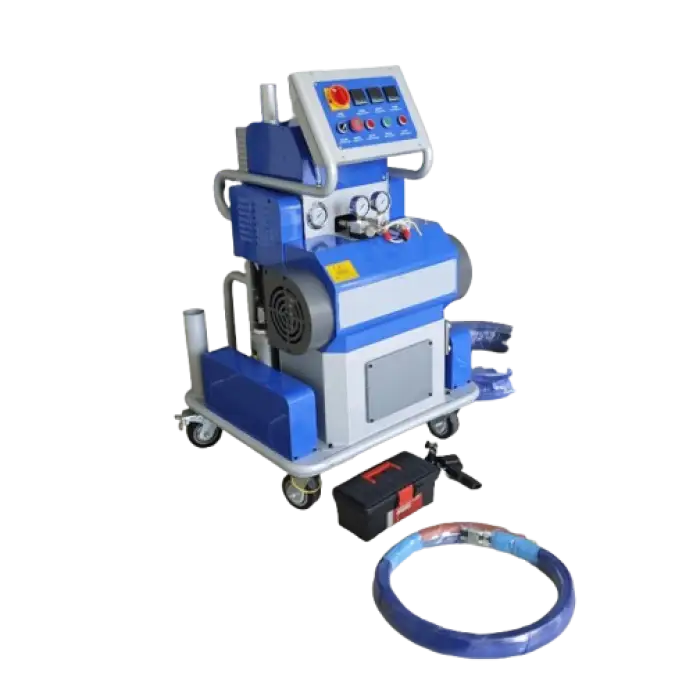 The machine is designed for spraying both polyurethane and polyurea, making it ideal for applications in building materials, manufacturing, and construction.