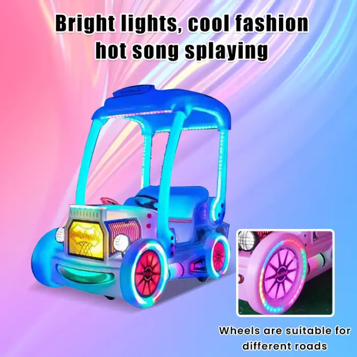 The bumper car features vibrant colors that are designed to attract children's attention.