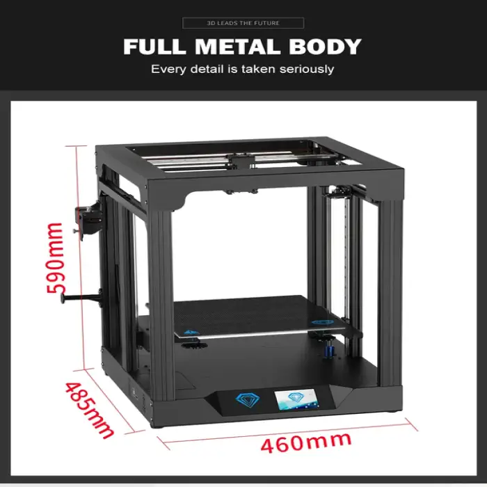 The dimensions of the TWOTREEES SP-5 V1.1 are 590 x 485 x 460 mm.
