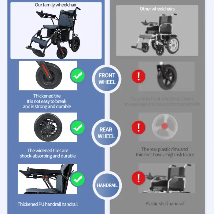 The Ultra - Light Foldable Electric Wheelchair is ideal for elderly individuals and people with disabilities who need assistance with mobility.