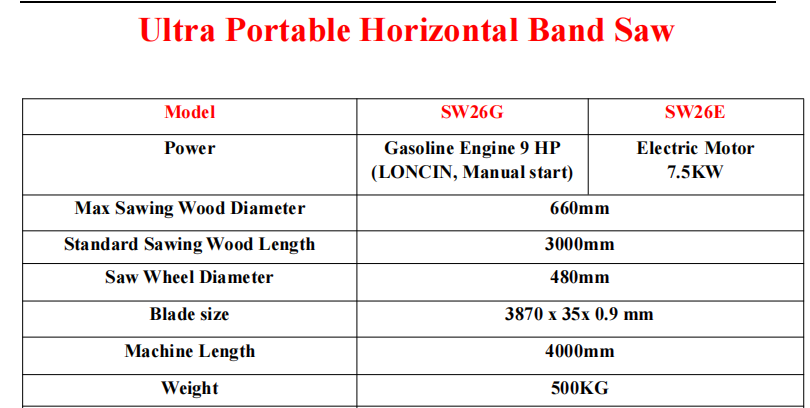 Ultra Portable Horizonal Band Saw - No wheels - Petrol Version