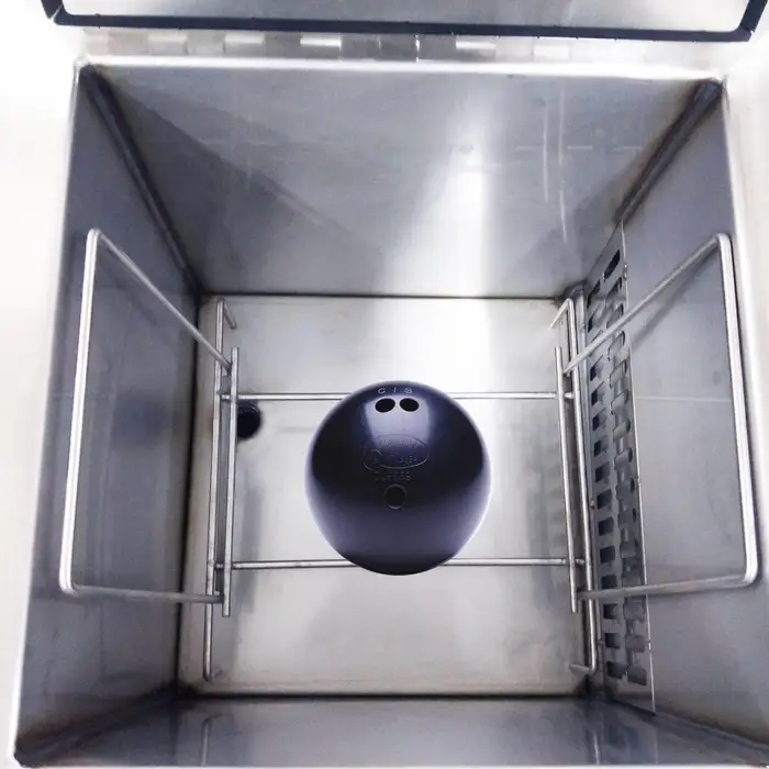 The cleaner has a large tank capacity of 33 liters, allowing you to clean multiple bowling balls at once.