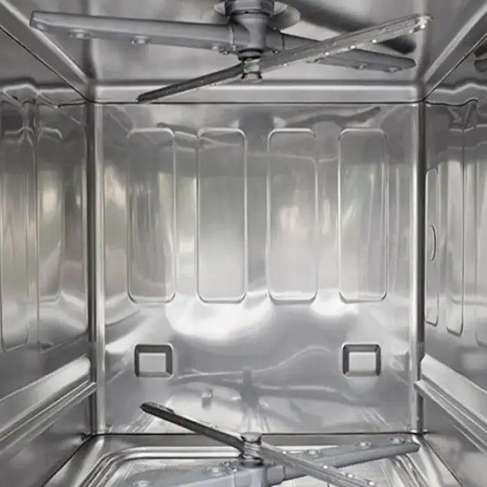 Use commercial-grade dishwasher detergents and rinse aids formulated for high-temperature or commercial machines. Follow chemical supplier recommendations and the manufacturer’s manual for dosing and safe handling.