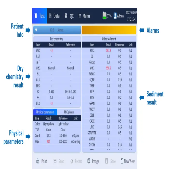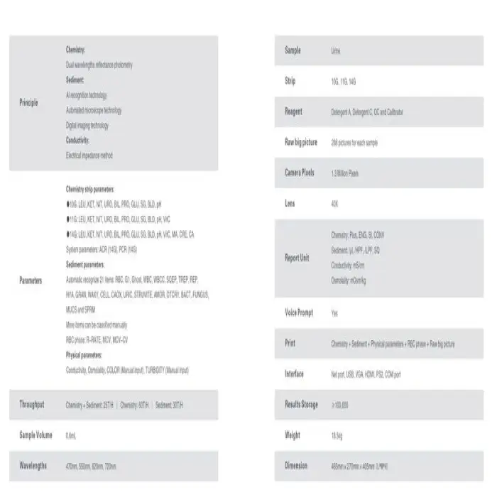 The URIT US-500 is suitable for routine urine analysis in hospitals, pathological tests in laboratories, diagnosing medical conditions, and supporting clinical research.