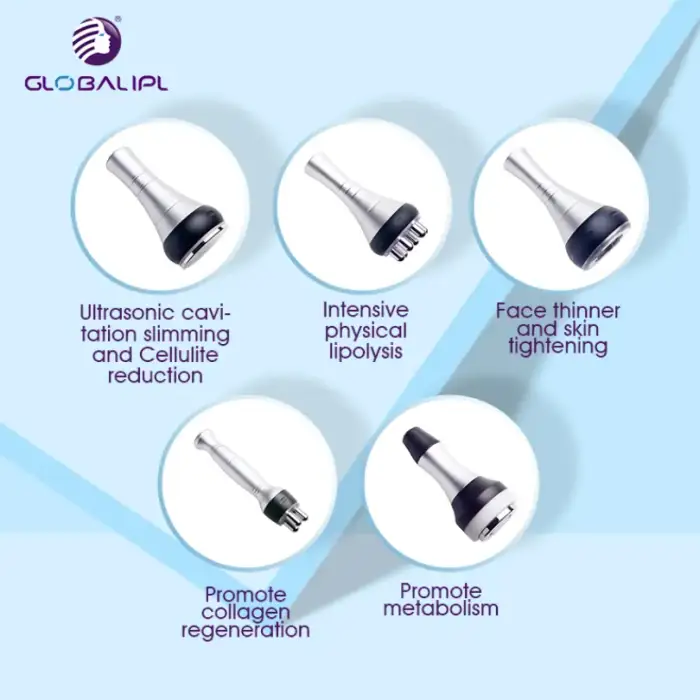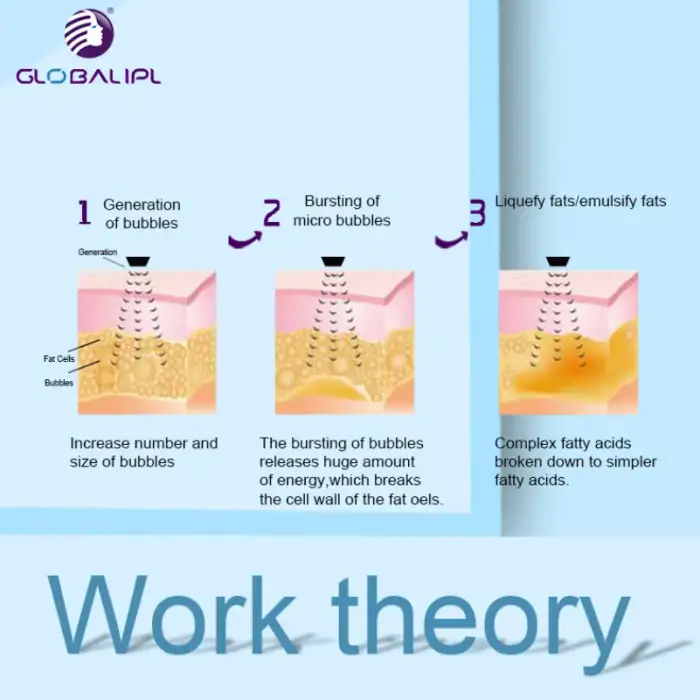 40kHz cavitation creates micro-bubbles that help disrupt fat cells, RF (radiofrequency) heats tissues to stimulate collagen production and tighten skin, and vacuum therapy promotes circulation and lymphatic drainage. Together they enhance fat breakdown, removal and skin remodeling.