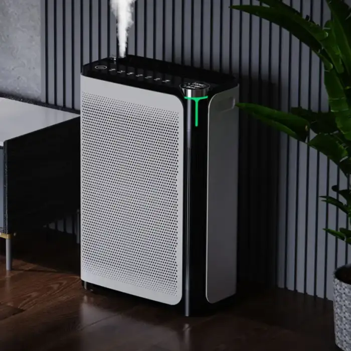 Yes, this device also functions as a humidifier, maintaining ideal moisture levels in the air to enhance comfort, especially in dry environments.