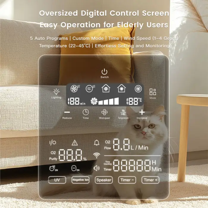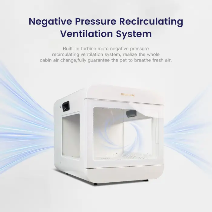 The smart temperature control feature allows you to adjust the temperature within the chamber, ensuring your pet is comfortable during their treatment or recovery, with a range from normal temperature up to 40℃.