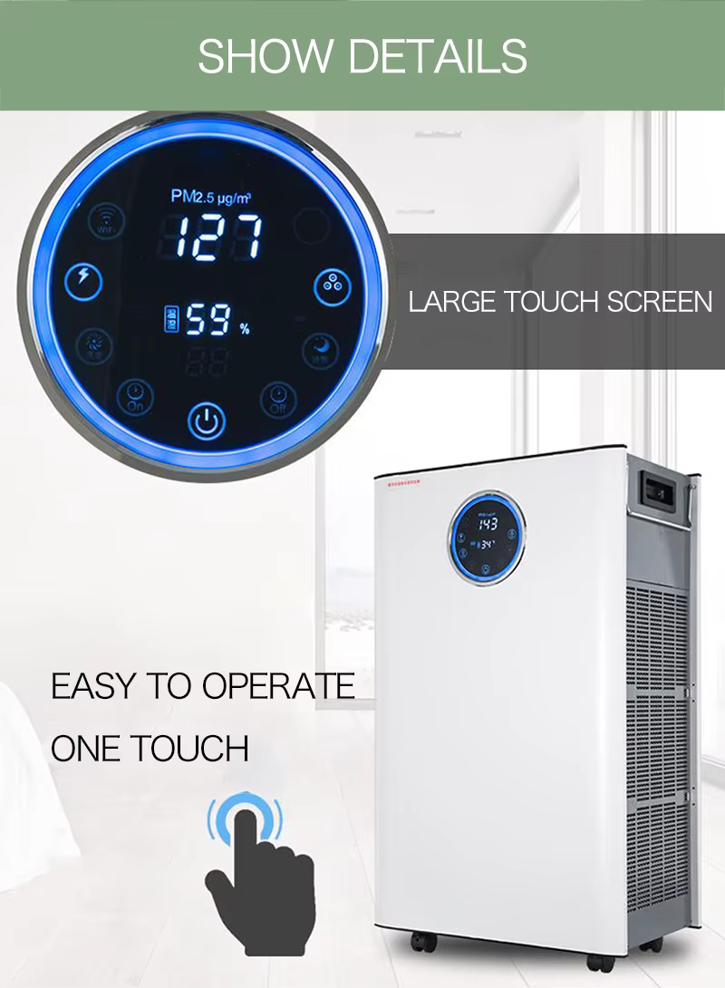 This air purifier is suitable for various applications including hotels, garages, households, healthcare settings, and offices.