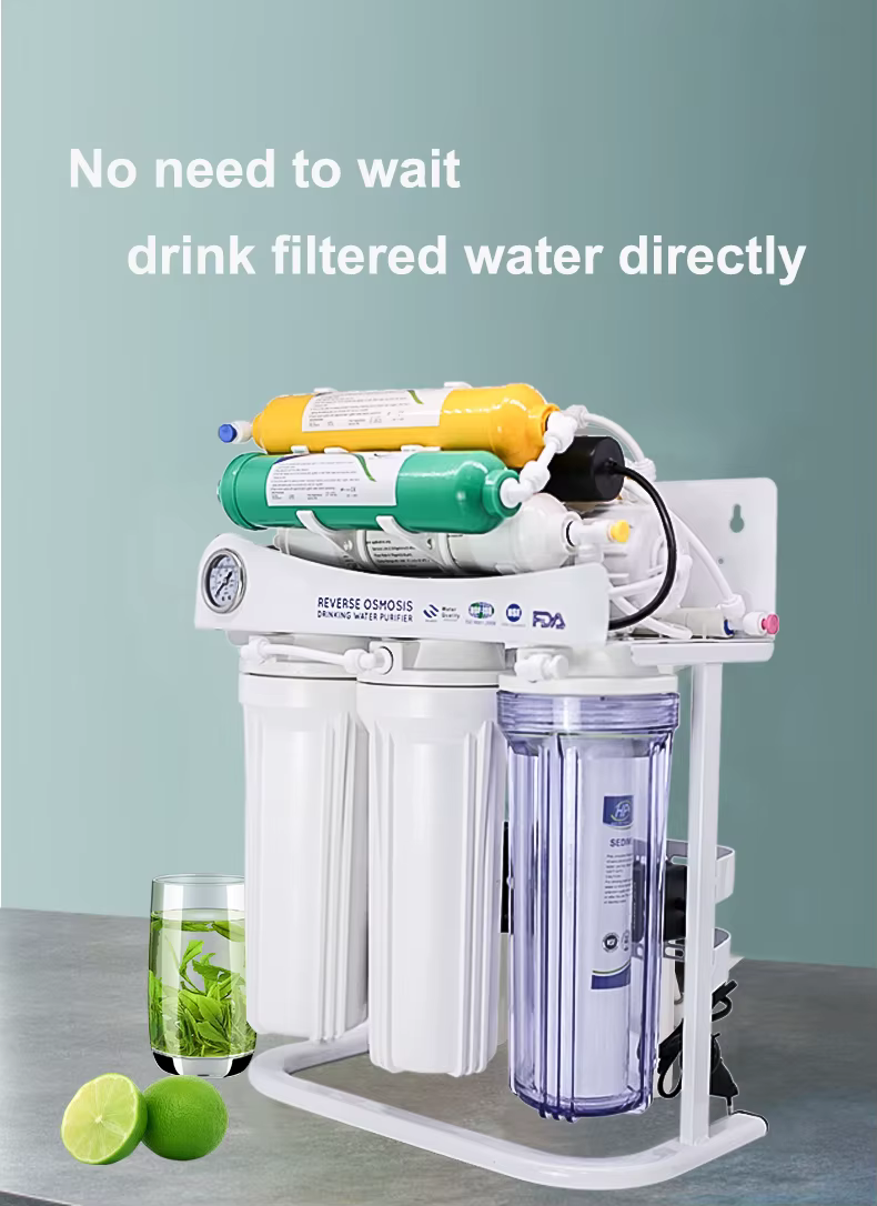 The reverse osmosis system works by forcing water through a semipermeable membrane that filters out impurities and contaminants, ensuring that only clean water passes through.