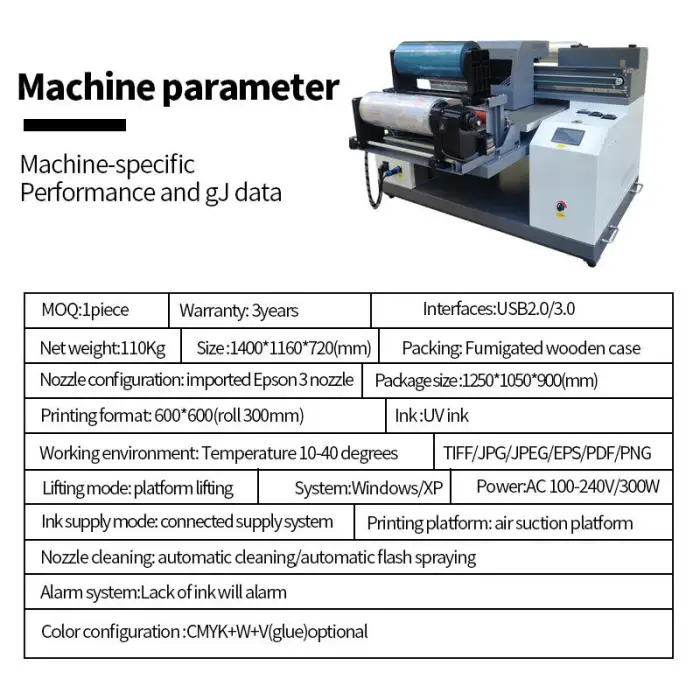 The UVDTF Inkjet Printer has a print speed of up to 19 pages per minute.