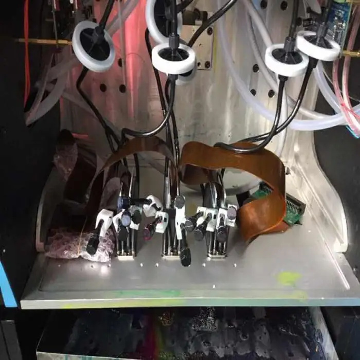 The printer can use Ricoh and LED UV inks, eco-solvent inks, and textile inks.